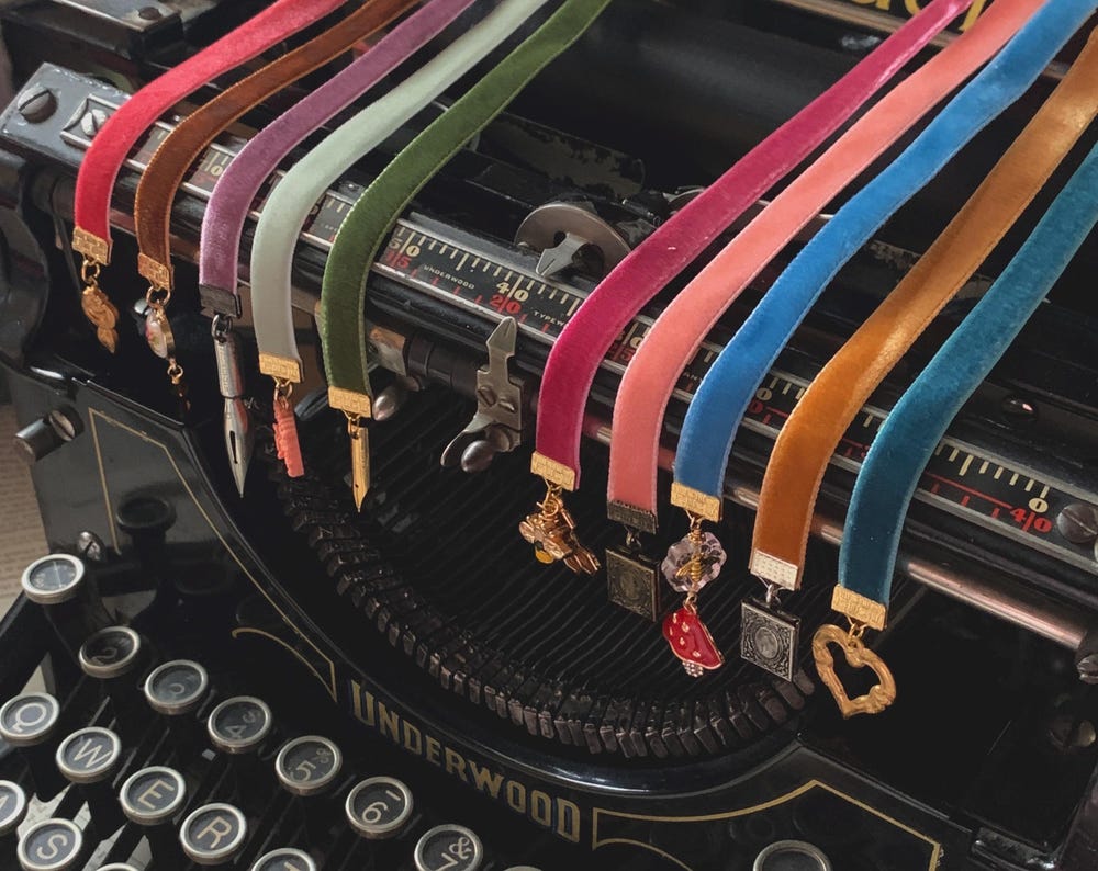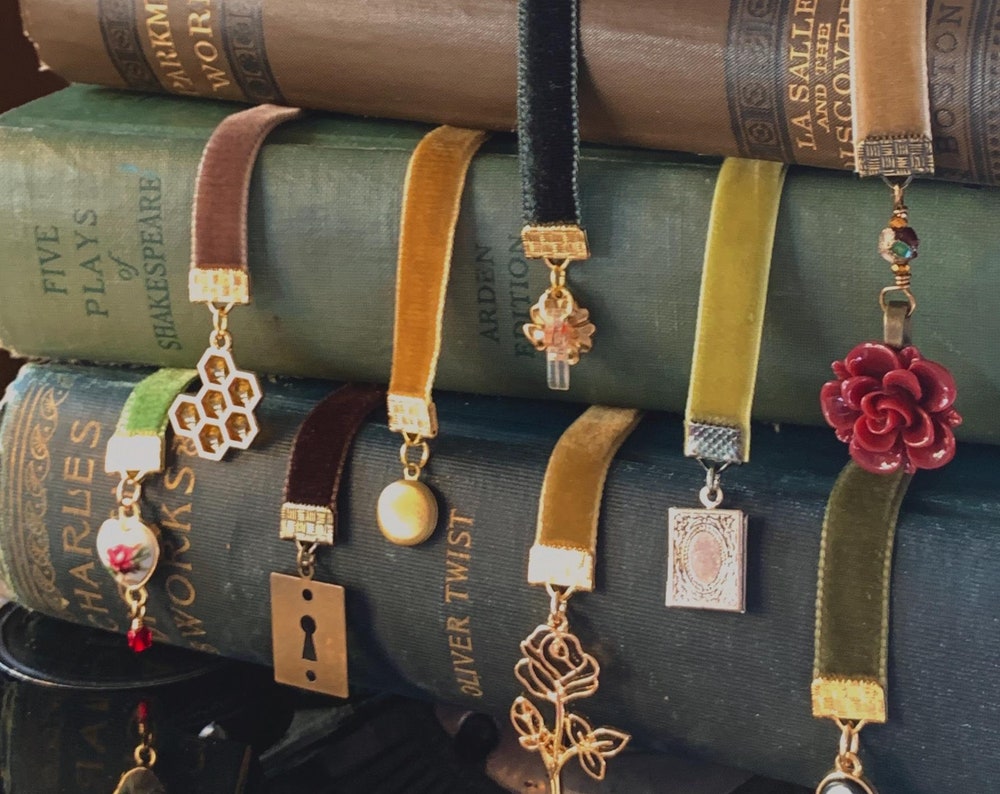 Handmade jewelry and bookmarks inspired by literature and love.
