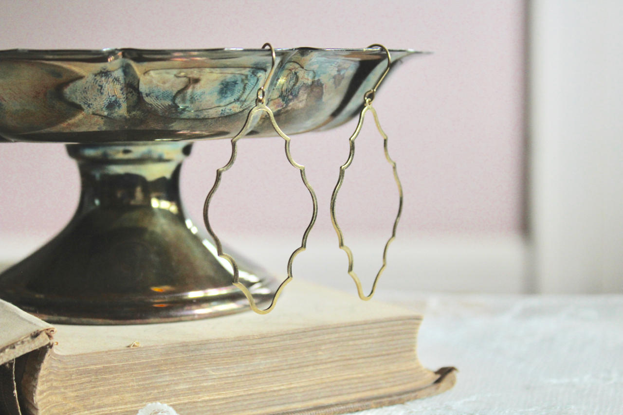 • Delicados y superligeros pendientes de latón crudo con forma de diamante festoneado.