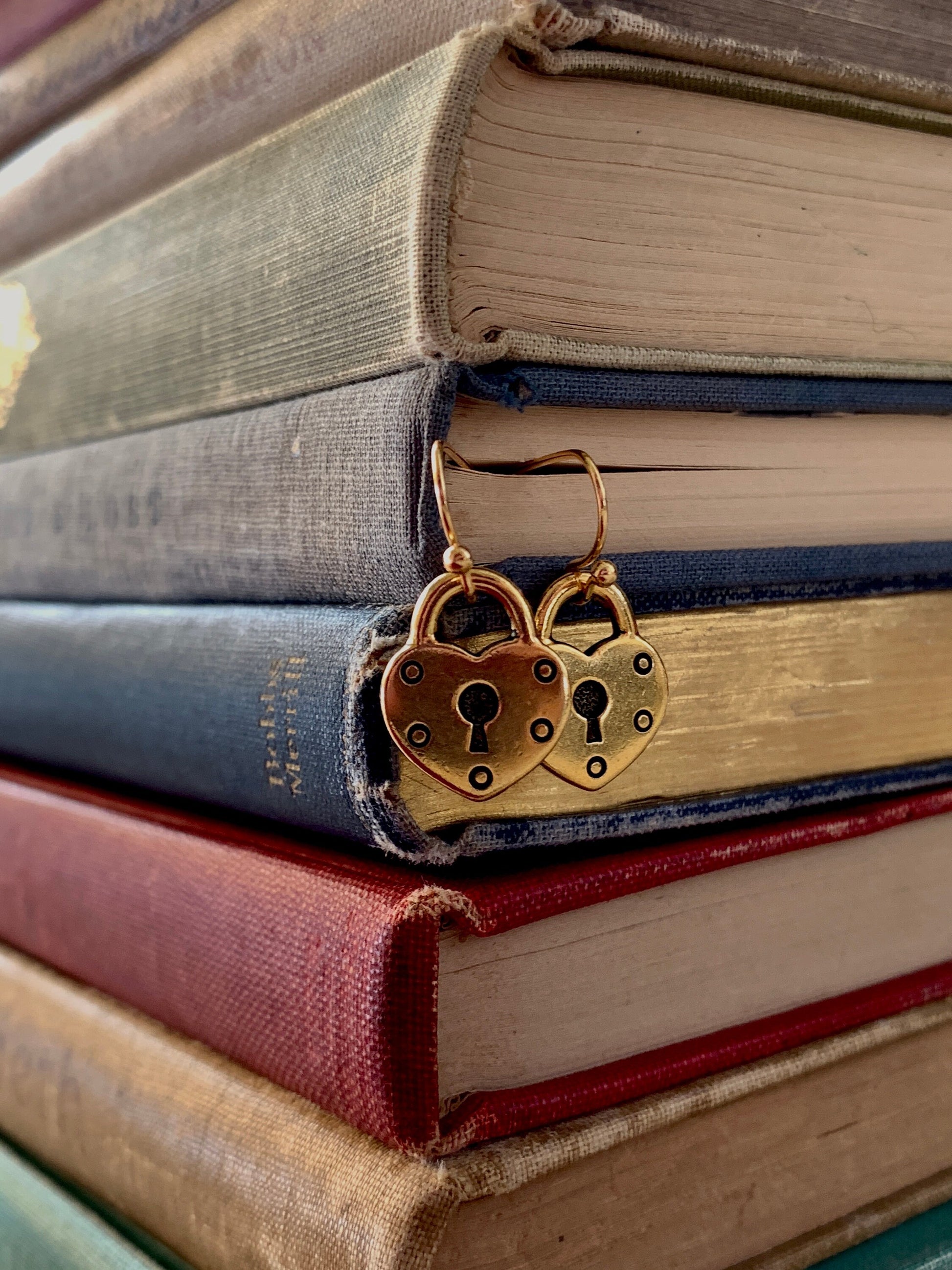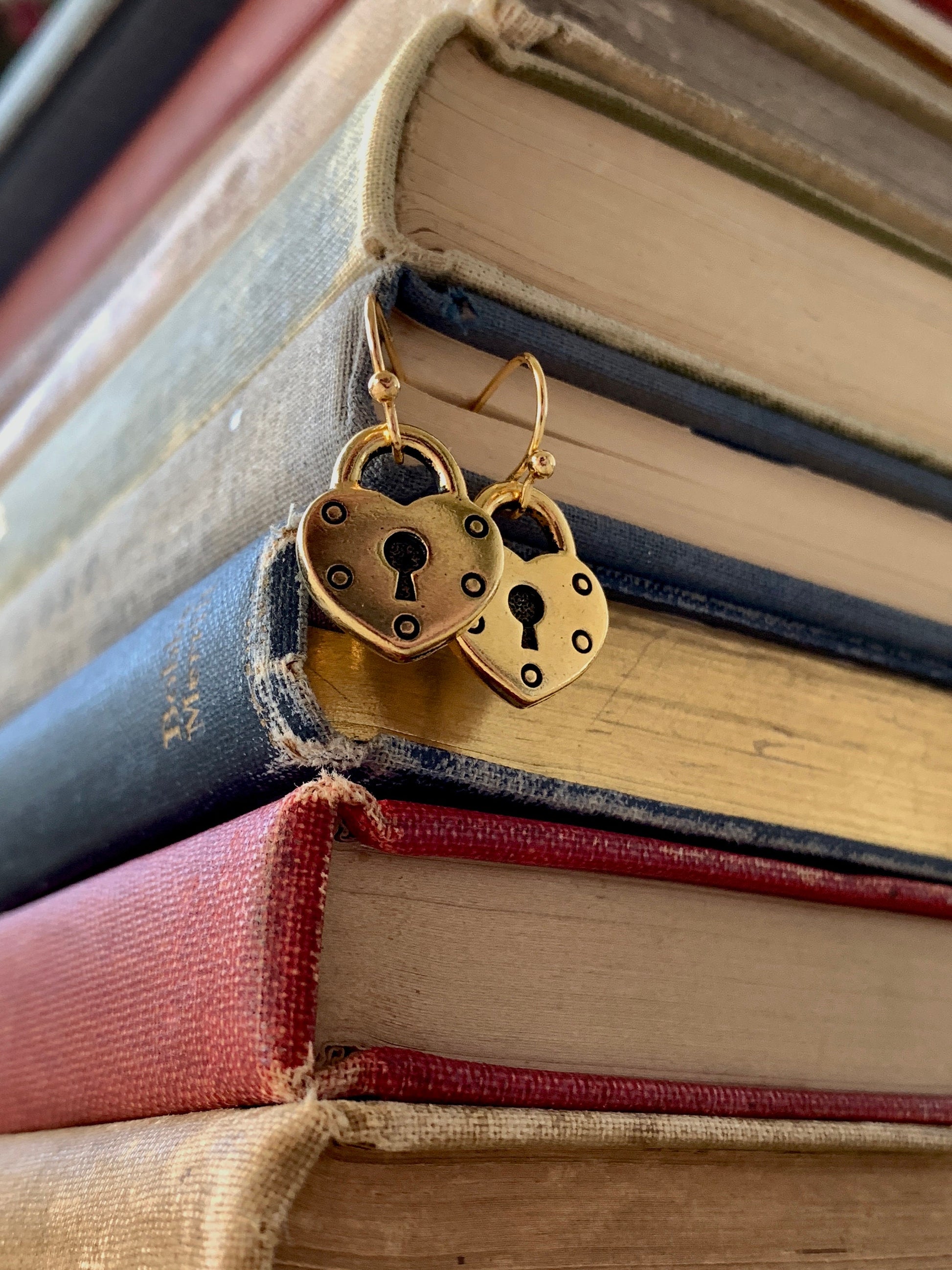 Gold plated heart lock earrings, heart jewelry, key hole earrings, dark romance jewelry, girlfriend jewelry, minimalist earrings