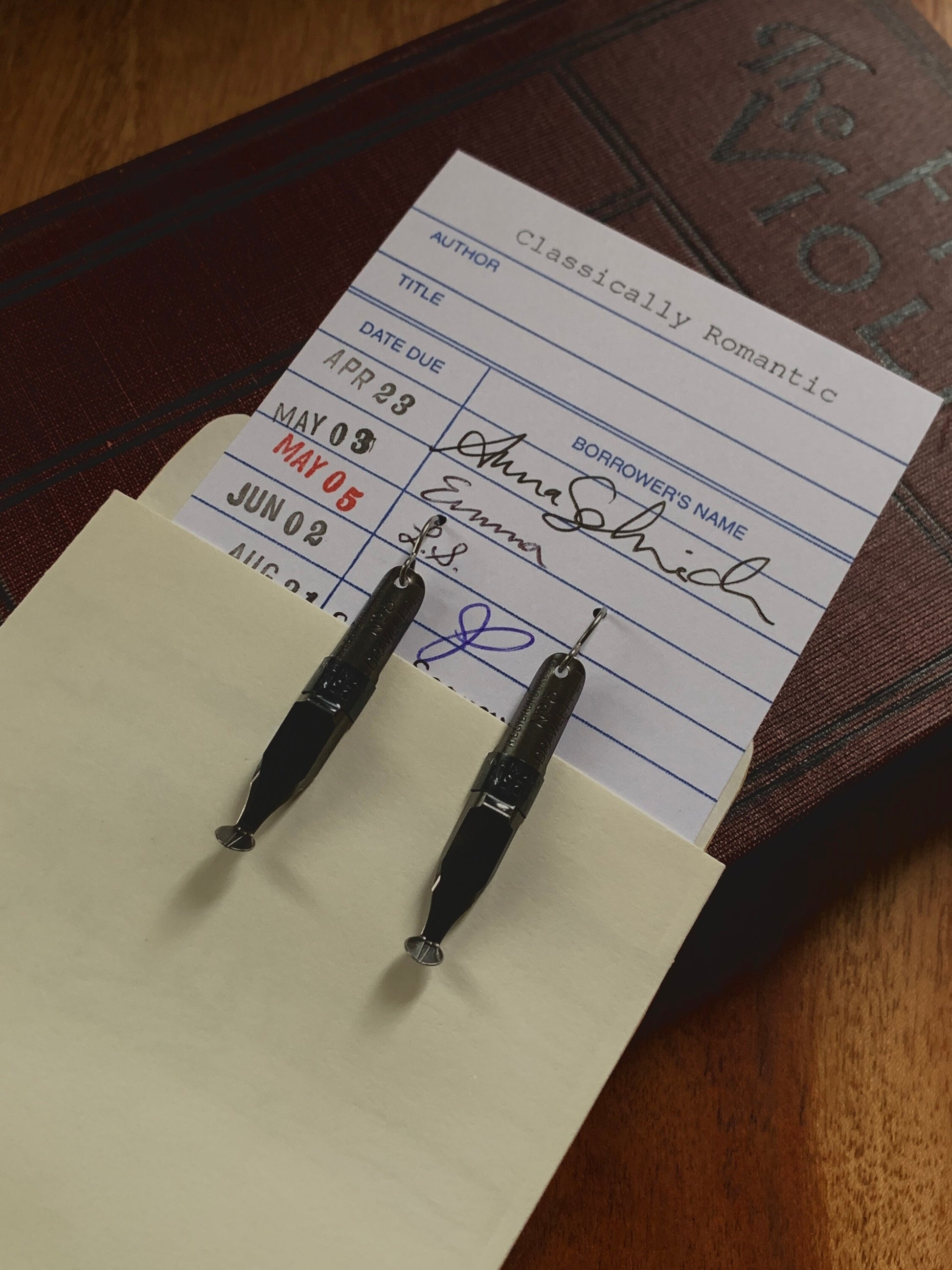 Vintage Esterbrook pen nib earrings, pen nib earrings, steel dip pen, Esterbrook No. 5 Drawlet, pen nibs, vintage pen nibs, dark academia