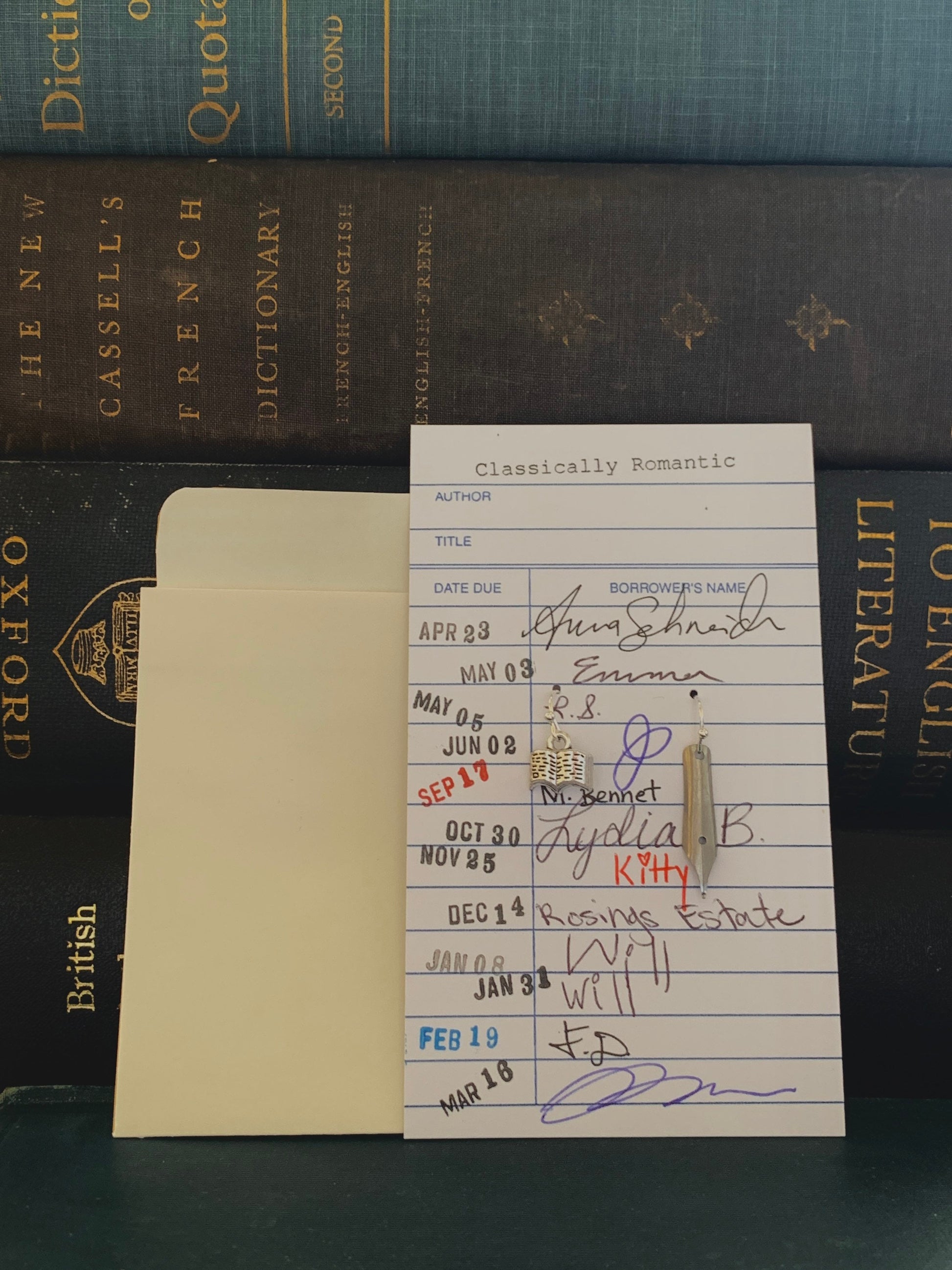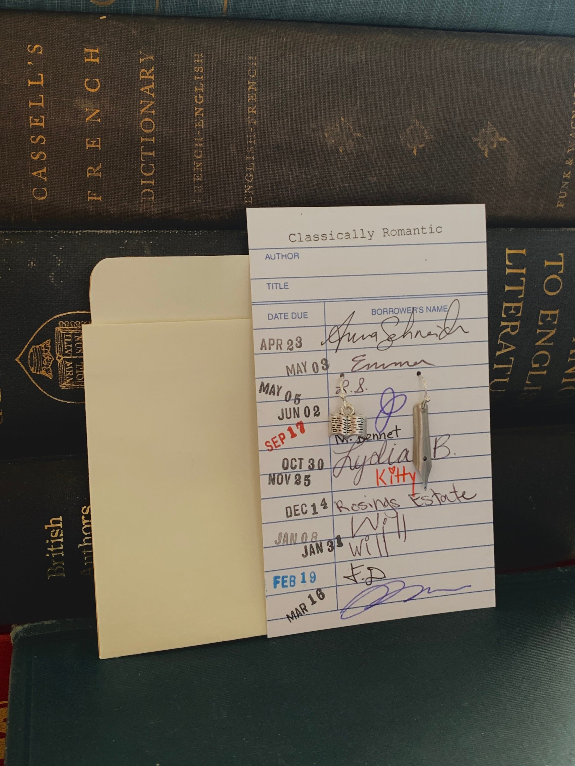 Vintage fountain pen & book charm earrings, fountain pen nibs, pen nib earrings, pen nib jewelry, vintage pen nibs, dark academia, book gift